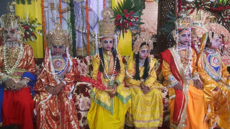 अयोध्या . राम नगरी अयोध्या में प्रसिद्ध मंदिर विअहूति भवन में सावन के महीने में चल रहे श्री सीताराम विवाहोत्सव पूजन पद्धति का समापन किया गया .श्री राम विवाह सावन शुक्ल पक्ष पंचमी से प्रारंभ होकर भाद्र कृष्ण पक्ष पंचमी तक चलता है. सावन की पंचमी को भगवान राम व सीता का विवाह कर झूलन उत्सव का प्रारंभ होता है तथा लगातार प्रतिदिन भगवान को मनमोहक कजरी गीत गाते हुए भगवान् युगल सरकार को झूला झुलाते हैं . यह झूलनोत्सव भाद्र कृष्ण पक्ष पंचमी तक मनाया जाता है .भाद्र कृष्ण पक्ष पंचमी को झूलनोत्सव के समाप्ति के पर भगवान श्रीराम व माता सीता को झूला झुलाने के बाद भगवान का पुनः विवाह वक्त कलेवा कर भजन संगीत होता है तथा विअहूति भवन में झूलनोत्सव समापन के दौरान लगभग 30 की संख्या में भगवान राम व सीता के स्वरूपों को झूला झुलाकर विवाह और कलेवा किया गया । इस दौरान अयोध्या हजारो की संख्या में संत महंत मौजूद रहे । यह कार्यक्रम प्रतिवर्ष लगातार वर्षों से चल रहा है विअहूति भवन के अधिकारी परमानंद शरण ने बताया कि जनकपुर की परम्परा के अनुसार राजा जनक के काल से चली आ रही पूजा सेवा पद्धतियों के अनुसार ही यहां भी सावन के मौके पर वृहद्प झूलनोत्सव का आयोजन किया जता है .जिस प्रकार जनकपुर में भगवान राम व सीता का झूलनोत्सव विवाह के पश्चात ही प्रारंभ किया जाता है उसी प्रकार उसी पद्धति के अनुसार विअहूति भवन अयोध्या में भी भगवान राम व सीता का झूलनोत्सव समापन झूला के बाद भगवान राम और सीता का विवाह फिर कलेवा कर इस भव्य कार्यक्रम का समापन होता है . इस मनोहारी कार्यक्रम के दौरान पूरी रात मंदिर परिसर में भजन कीर्तन के साथ कजरी गीतों की प्रस्तुति होती रही . भ्क्क्त श्रद्धालु निहाल हो इस पारम्परिक आयोजन का लाभ लेते रहे .इस भव्य आयोजन के साथ ही अयोध्या मेंइ सावन झूला मेला 2017 का समापन हो गया .