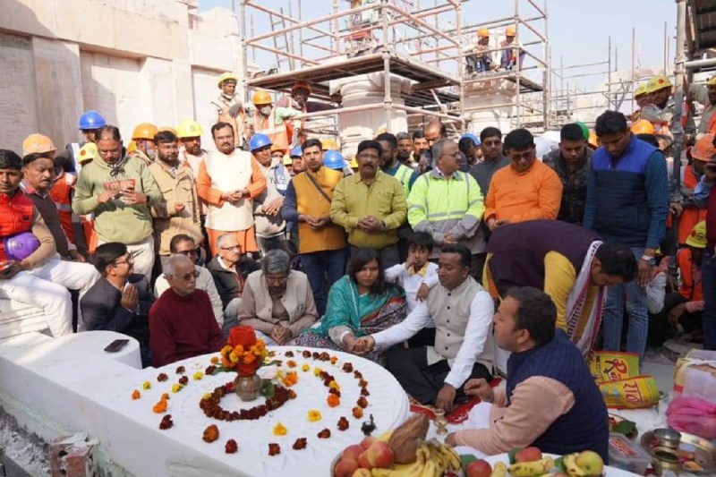 मंदिर निर्माण कर रहे वर्करों ने रखी पूजा