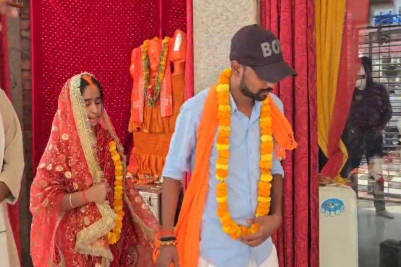 मुबारकपुर थाना क्षेत्र के निवासी राजा बाबू विहिप के सदस्य हैं। राजा बाबू प्रजापति की उनके मोहल्ले की रहने वाली सदमा नूरी का प्रेम फरवरी 2025 में परवान चढ़ा। तीन महीने के प्रेम के बाद दोनों ने शादी का फैसला लिया, लेकिन धर्म आड़े आ गया। राजा बाबू ने अपने संगठन से मदद मांगी। गुरुवार को पहले कोर्ट मैरिज हुई और फिर शिव मंदिर में वैदिक रीति-रिवाज से शादी संपन्न हुई। राजा बाबू ने रानी की मांग में सिंदूर भरा, दोनों ने अग्नि को साक्षी मानकर सात फेरे लिए और एक-दूसरे को जयमाला पहनाई। शादी में राजा बाबू के परिजन मौजूद थे, लेकिन रानी के परिवार वाले शामिल नहीं हुए। नवदंपति शादी के बाद बेहद खुश नजर आए। विहिप के प्रांत संयोजक (गोरखपुर क्षेत्र) गौरव रघुवंशी ने बताया कि राजा बाबू हमारे कार्यकर्ता हैं। उन्होंने सदमा से प्रेम और शादी की इच्छा जताई थी। धर्म की अड़चन को दूर कर आज कोर्ट और मंदिर में उनकी शादी संपन्न हुई।
