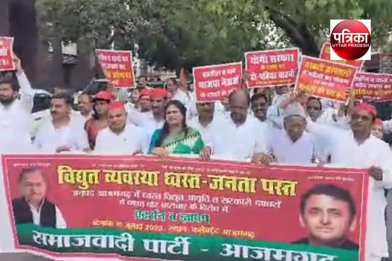 आजमगढ़: समाजवादी पार्टी जनपद आजमगढ़ द्वारा जनपद की विभिन्न समस्याओं को लेकर जिलाधिकारी आजमगढ़ को ज्ञापन देकर विरोध दर्ज कराया गया। प्रदर्शन के दौरान सभी विधायक, वरिष्ठ नेता व कार्यकर्ता अपने हाथों में बैनर व तख्ती लिखे नारों के साथ चल रहे थे। कार्यकर्ता नारे लगाते हुए जिलाधिकारी कार्यालय पर पहुंचकर ज्ञापन दिया कि जनपद में विद्युत व्यवस्था पंगु हो गई है शहर से गांव तक अनिश्चित आपूर्ति से किसान व अन्य उपभोक्ता दोनों परेशान हैं। धान की रोपाई का महत्वपूर्ण समय चल रहा है लेकिन बिजली की आंख मिचौली से खेत तक पानी नहीं पहुंच पाता है।