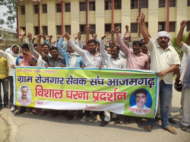 आजमगढ़. तहबरपुर व अहरौला ब्लाक क्षेत्र के ग्राम रोजगार सेवकों ने गुरुवार को अपनी समस्याओं को लेकर ब्लाक मुख्यालयों पर धरना-प्रदर्शन किया। रोजगार सेवकों ने सूबे के मुख्यमंत्री के नाम सम्बोधित 9 सूत्रीय मांगों का ज्ञापन संबंधित खंड विकास अधिकारियों को सौंपा। रोजगार सेवकों ने चेतावनी दिया कि यदि हमारी मांगों पर शीघ्र विचार नहीं किया गया तो हम बड़े आंदोलन को बाध्य होंगे। जिसकी सारी जिम्मेदारी शासन-प्रशासन की होगी।
