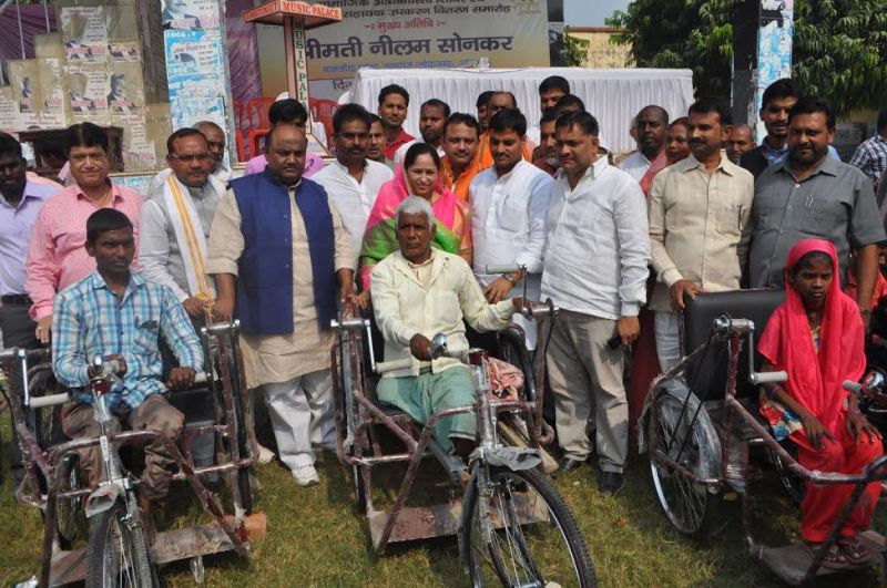 आज़मगढ़. लोकसभा लालगंज की सांसद श्रीमती नीलम सोनकर की अध्यक्षता में मेहता पार्क में एलिमको कानपूर द्वारा पूर्व परीक्षण कैम्प के अधार पर 402 दिव्यांगों को ट्राई-साइकिल, ह्वील चेयर एवं बैशाखी का वितरण किया गया।