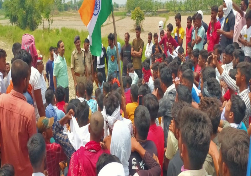 जाम कर प्रदर्शन करते युवा