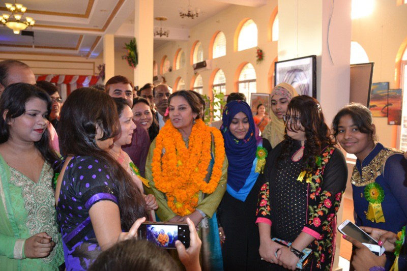 आजमगढ. आजमगढ फाइन आर्ट सेंटर एवं पूर्वांचल विकास आंदोलन द्वारा सिधारी स्थित मंगलम होटल में आयोजित दो दिवसीय पेटिंग प्रदर्शनी का उद्घाटन रविवार को फिल्म अभिनेत्री शबाना आजमी ने किया। प्रदर्शनी में महिला कलाकारों द्वारा प्रदर्शित की गयी कृतियों को देखने के बाद उन्होंने कहा कि जनपद के महिलाओं द्वारा अपने विचारों को कैनवास पर जिस आकर्षक तरीके से उकेरा गया वह बहुत ही काबिले तारीफ है।