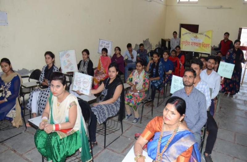 राष्ट्रीय सेवा योजना की कार्यक्रम अधिकारी डॉ किरन गर्ग ने मतदाता जागरूकता पोस्टर प्रतियोगिता का आयोजन किया, डॉ किरन गर्ग ने बच्चों को मतदान के विषय में बताते हुए कहा कि मतदान करना राष्ट्र का सबसे बड़ा पुण्य का कार्य है क्योंकि यदि मतदाता अच्छे और सच्चे उम्मीदवार को चुनते हैं, तो देश में एक मजबूत सरकार बनती है। जो देश के विकास के लिए नीतियां बनाती है और उससे सभी का विकास होता है।