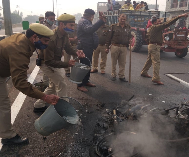 आग लगने से बाइक सवार युवक बुरी तरह से झुलस गया। ग्रामीणों ने उसे किसी तरह से अस्पताल पहुंचाया है। जहां डॉक्टरों ने उसे मृत घोषित कर दिया। पुलिस व ग्रामीणों ने बाइक में लगी आग बुझाई तथा हाईवे से बाइक को हटाकर जाम खुलवाया। मामले में कोतवाली एसआइ सुरेंद्र सिंह का कहना है कि बाइक सवार युवक के शव का पंचनामा भर पोस्टमार्टम के लिए भेज दिया गया है।