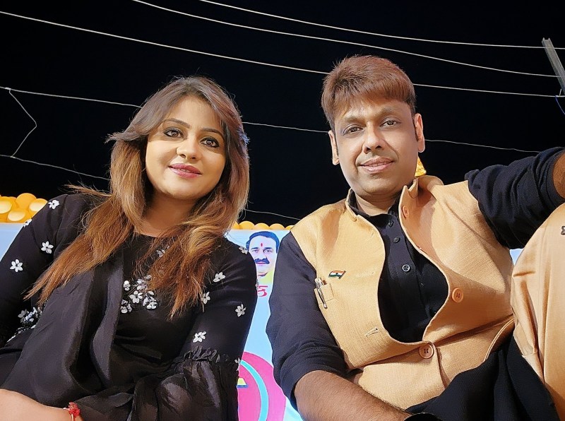कवियत्री अनामिका अंबर और पति कवि सौरभ सुमन जैन।