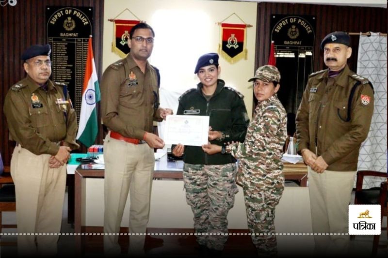 महिला कमांडों को सम्मानित करते बागपत एसपी अर्पित विजयवर्गीय