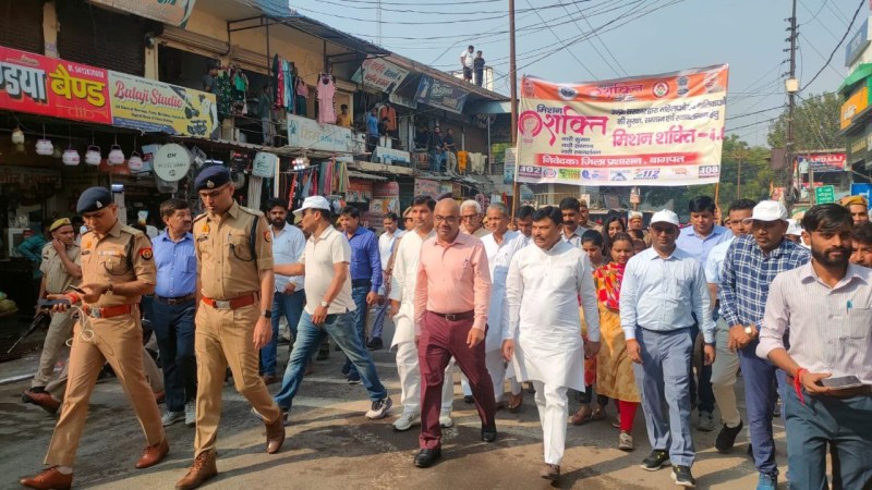 मिशन शक्ति के अंतगर्त रैली में शामिल अधिकारी और बागपत शहर के लोग।