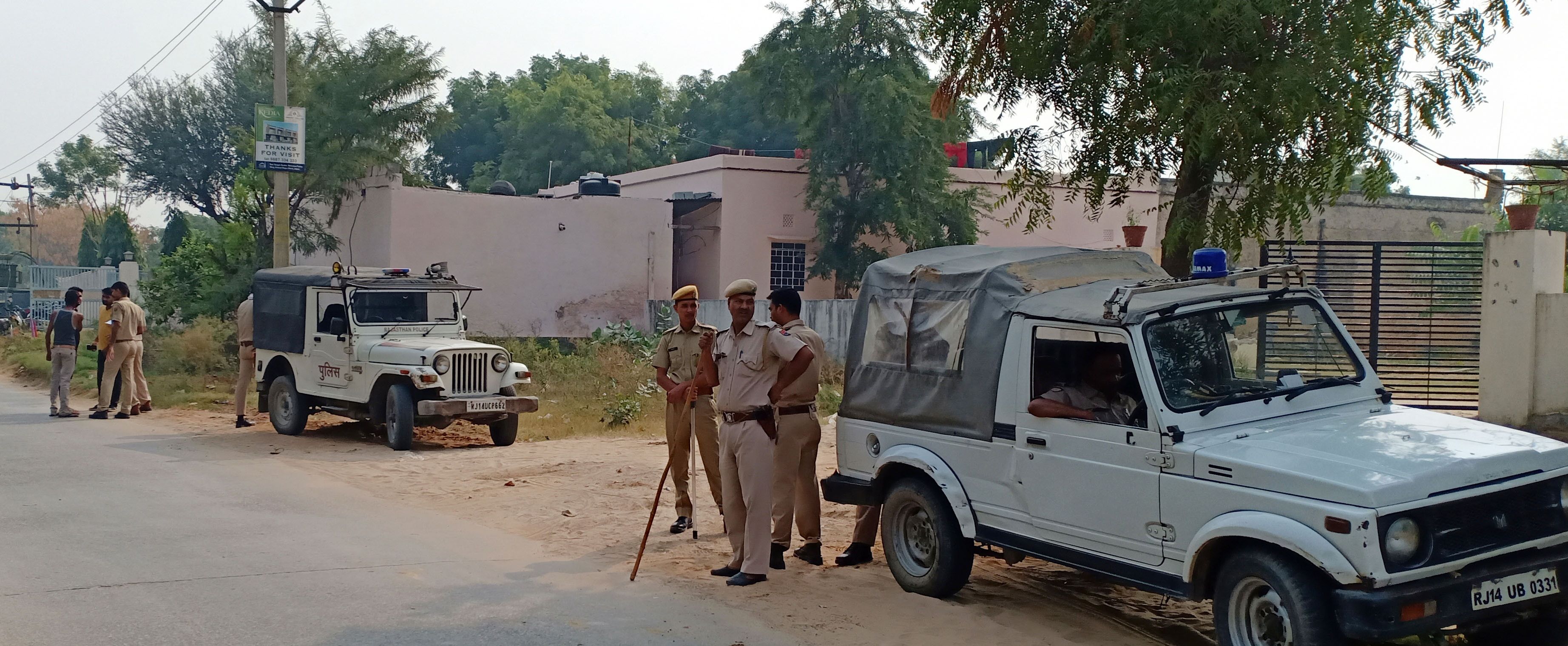 सिरसी के कुण्डा गांव में झगड़े बाद घटनास्थल पर तैनात पुलिस।