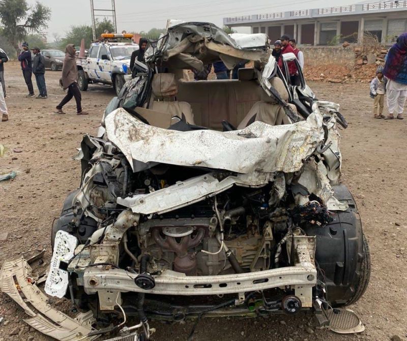 जानकारी के मुताबिक निम्बाहेड़ा में अध्यापक मुकेश यादव निवासी अणतपुरा- दिवराला थाना अजीतगढ़ अपने पिता सुवालाल की मौत की सूचना के बाद उनकी अर्थी को कंधा देने अपने 4 दोस्तों के साथ कार से गांव आ रहा था। करीब चार बजे गिदानी कट के पास अचानक घूम रहे ट्रेलर से कार टकरा गई। हादसा इतना भीषण था कि कार पूरी तरह कबाड़ में तब्दील हो गई। कार सवार भी लोग बुरी तरह फंस गए। धमाके की आवाज सुनकर हाईवे पर होटल-ढाबों से लोगों की भीड़ घायलों को बचाने पहुंचे। लोगों ने घायलों को बाहर निकाला।