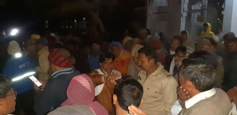 दौलतपुरा. देर रात हंगामा करते लोग।