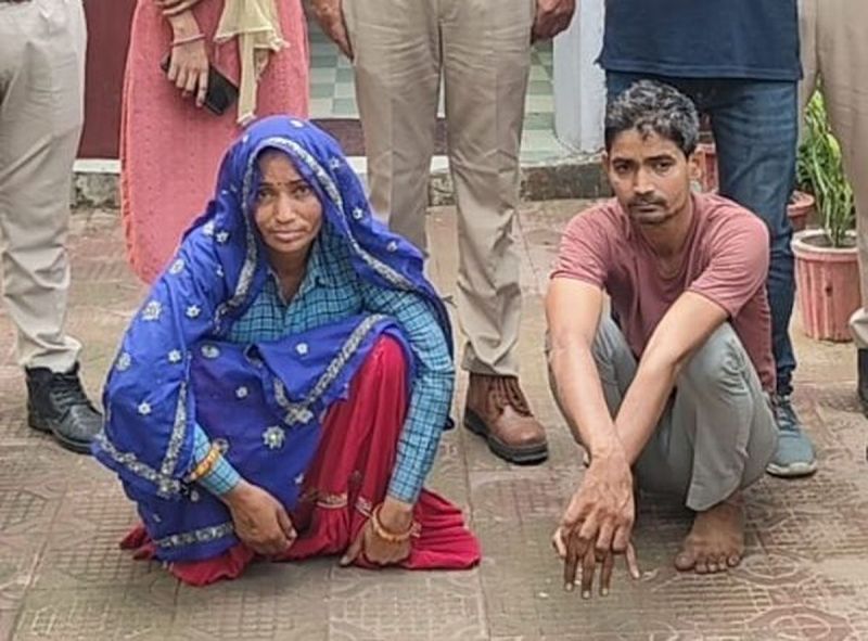 पुलिस की गिरफ्त में आरोपी पति-पत्नी।