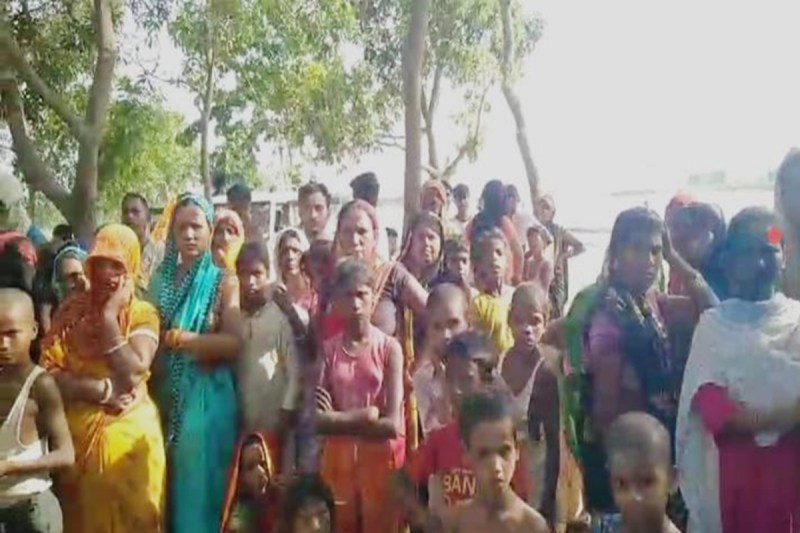 घटना के बाद ग्रामीणों की जुटी भीड़