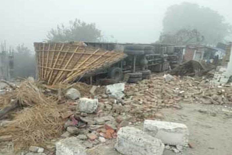 जालिम नगर पुलिस चौकी में टेलर घुसने के बाद पलटा