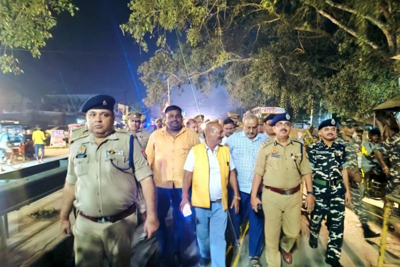 डीआईजी देवीपाटन मंडल पुलिस कर्मियों के साथ नेपाल सीमा क्षेत्र में भ्रमण करते