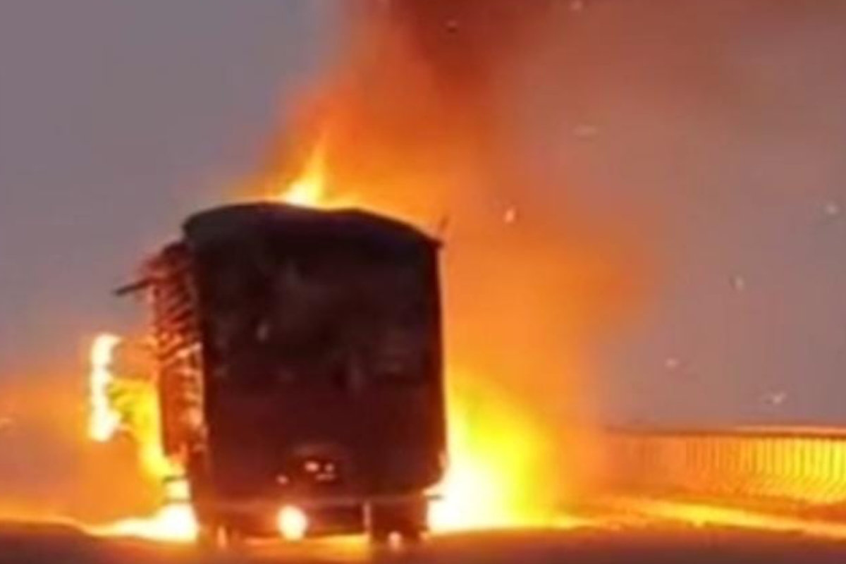 Bahraich News: बहराइच- सीतापुर हाईवे पर चहलारी घाट पुल के पास प्लाई बोर्ड लगे चलते ट्रक में आग लग गई। ट्रक खड़ी कर चालक और क्लीनर ने कूद कर अपनी जान बचाई। आग की लपटे इतनी विकराल थी कि आसपास से कोई वाहन निकल नहीं सकता था। जिसकी वजह से हाईवे पर चार से पांच किलोमीटर लंबा जाम लग गया। मौके पर पहुंचे फायर कर्मियों की कड़ी मशक्कत के बाद आग पर काबू पाया गया। हालांकि ट्रक पूरी तरह से जलकर खाक हो गया।