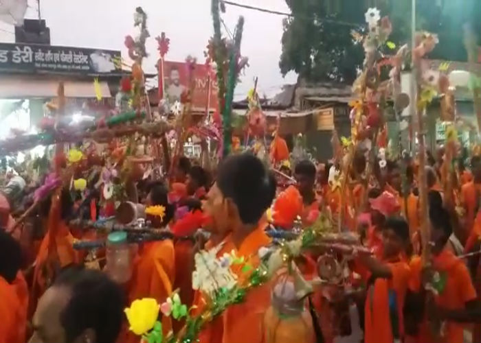 किरण के साथ भारी तादात में कावरियों का जत्था भोलेनाथ का जयकारा लगाते हुए