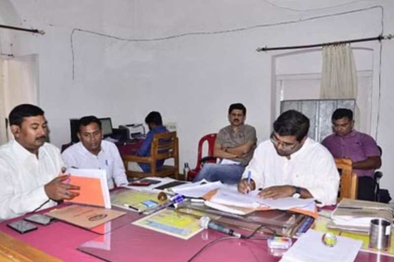 बहराइच में नामांकन पत्रों की जांच करते अधिकारी