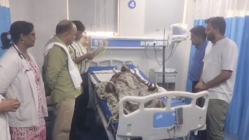 अस्पताल में भर्ती घायल, उपस्थित डॉक्टर।