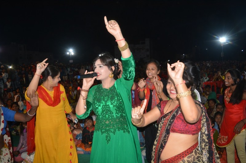 आचार संहिता लागू होने के कारण कार्यक्रम शाम सात बजे से ही शुरू कर दिया गया था। जो रात करीब ११ साढ़े ११ बजे तक चला। पूरे कार्यक्रम के दौरान मैदान में बड़ी संख्या में मौजूद महिला, पुरूष, बच्चों और खासकर युवाओं ने भजनों पर जमकर नृत्य किया और ताली बजा लेना भजन में खूब तालिया बजाकर भी कलाकाराओं का उत्साह वर्धन किया। अंत में आभार प्रदर्शन के साथ कार्यक्रम का समापन किया गया।