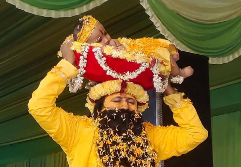 श्री कृष्ण जन्म के दिवस भक्तों ने पुरे परिसर को मथुरा का स्वरूप दे दिया। जैसे ही प्रंसग आया भक्तों ने बधाई गीत के माध्यम से तरह तरह की सामग्री बधाई स्वरूप वितरीत कर पुष्पों की वर्षा कर माहौल को पूर्णतह धर्ममय बना दिया। विशेषकर वासुदेव जी व बाल स्वरूप श्री कृष्ण की झांकी ने भक्तों को भाव विभोर कर दिया। स्वंय विधायक व पत्नी ने बधाई वितरित कर लंबे समय तक भक्तों के साथ नृत्य किया। पूरे प्रागंण में भक्तों का सैलाब पूरी लगन के साथ भागवत कथा में शामिल होने से नगर ही नहीं अपितू आसपास के ग्रामीण क्षेत्र में भी आयोजन की सफलता की गुंज नजर आ रही है।
