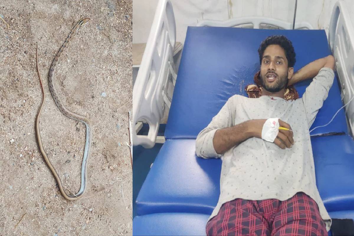 युवक को काटने के बाद तड़प-तड़प कर मरा सांप। (फोटो सोर्स- पत्रिका)