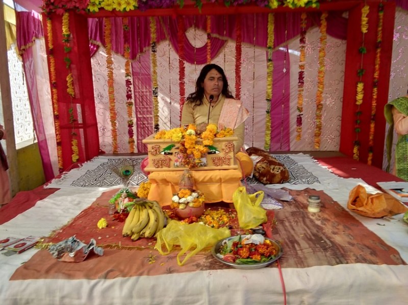 कथावाचक ने कहा कि संसार में सार है। मनुष्य इसमें रहकर भक्ति कर सकता है। जिससे अपना जीवन, परलोक सुधार सकता है। भागवत दर्पण का कार्य करती है जैसे दर्पण हमारे शरीर की अच्छाई बुराई को दिखाता है उसी प्रकार श्रीमद भागवत हमारे मन, ह्रदय की अच्छाई बुराई को दर्शाती है इसीलिए भागवत को आइना भी कहा गया है। उन्होंने राजा परीक्षित की श्राप कथा का वर्णन करते हुए कहा कि एक बार राजा परीक्षित आखेट के लिए वन में गए। वन्य पशुओं के पीछे दौडऩे के कारण वे प्यास से व्याकुल हो गए तथा जलाशय की खोज में इधर उधर घूमते घूमते वे शमीक ऋषि के आश्रम में पहुंच गए। वहां पर शमीक ऋषि नेत्र बंद किए हुए तथा शान्तभाव से एकासन पर बैठे हुए ब्रह्मध्यान में लीन थे। राजा परीक्षित ने उनसे जल मांगा किन्तु ध्यानमग्न होने के कारण शमीक ऋषि ने कुछ भी उत्तर नहीं दिया। सिर पर स्वर्ण मुकुट पर निवास करते हुए कलियुग के प्रभाव से राजा परीक्षित को प्रतीत हुआ कि यह ऋषि ध्यानस्थ होने का ढोंग कर के मेरा अपमान कर रहा है। उन्हें ऋषि पर बहुत क्रोध आया। उन्होंने अपने अपमान का बदला लेने के उद्देश्य से पास ही पड़े हुए एक मृत सर्प को अपने धनुष की नोंक से उठा कर ऋषि के गले में डाल दिया और अपने नगर वापस आ गए। लेकिन उनके पुत्र ऋंगी ऋषि को जब इस बात का पता चला तो उन्हें राजा परीक्षित पर बहुत क्रोध आया। ऋंगी ऋषि ने कमंडल से अपनी अंजुली में जल ले कर तथा उसे मन्त्रों से अभिमन्त्रित करके राजा परीक्षित को यह श्राप दे दिया कि जा तुझे आज से सातवें दिन तक्षक सर्प डसेगा। कुछ समय बाद शमीक ऋषि के समाधि टूटने पर उनके पुत्र ऋंगी ऋषि ने उन्हें राजा परीक्षित के श्राप के बारे में बताया। श्राप के बारे में सुन कर शमीक ऋषि को दु:ख हुआ और उन्होंने अपने पुत्र से कहा कि जरा सी गलती के लिए तूने राजा को घोर श्राप दे डाला। राजा ने जो कृत्य किया वह जान बूझ कर नहीं किया है, उस समय वह कलियुग के प्रभाव में था। इसके अलावा उन्होंने अनेक धार्मिक जानकारियां दी। कथा के बीच में प्रस्तुत किए गए भजनों पर श्रोता भाव विभोर हो गए। नांदी में प्रतिदिन दोपहर 12 से 4 बजे कथा का वाचन हो रहा है। यह कथा 10 जनवरी तक चलेगी।