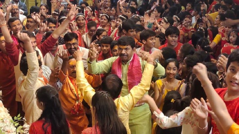भागवत कथा में हजारों भक्तों ने श्री कृष्णा के साथ खेली पुष्पों की होली