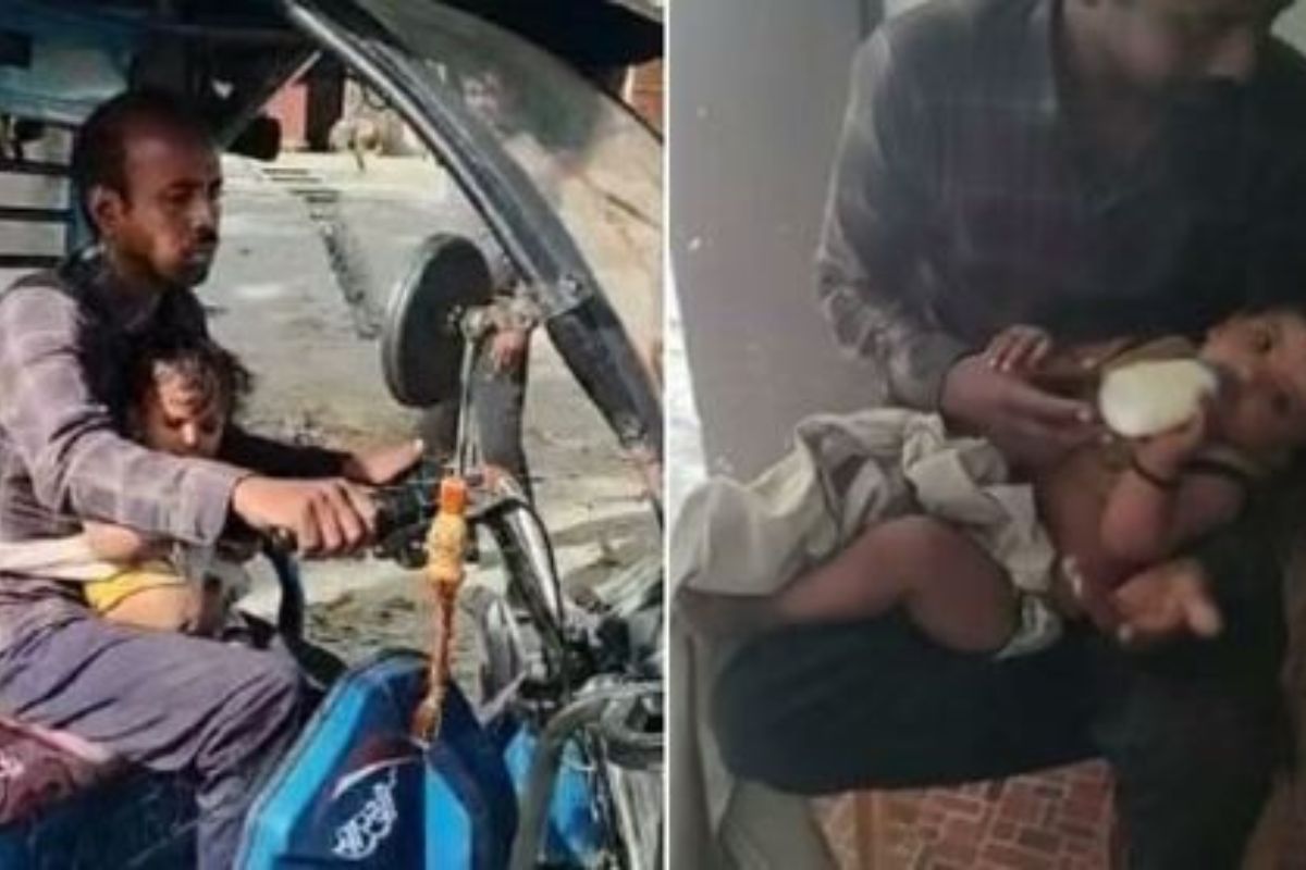 कमलेश बच्ची को पेट से बांधकर ई-रिक्श चलाता है। कमलेश की सोशल मीडिया पर खूब चर्चा हो रही है। करीब सवा साल की दुधमुंही बच्ची है। उसे पालने और घर के खर्च का जिम्मा कमलेश पर है। उसके पास खेत भी नहीं है। आय जरिया मात्र रिक्शा ही है। उसने किराया पर ई-रिक्शा लिया है।