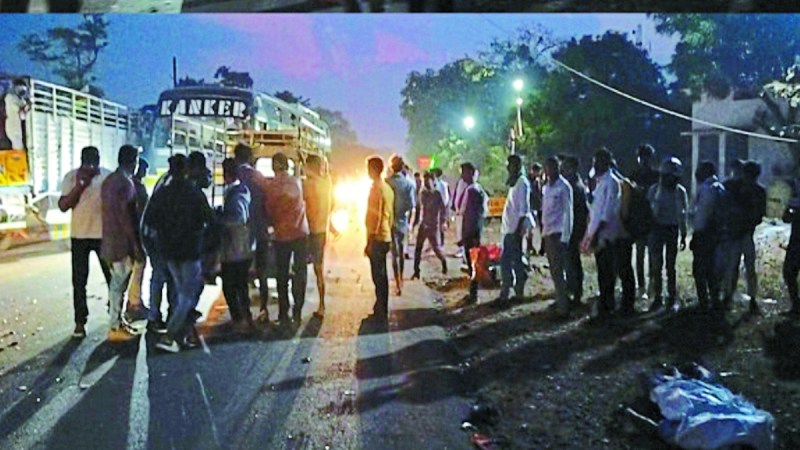 Road accident इन दिनों राजाराव पठार में वीर मेला के कारण भीड़ है। पुलिस विभाग की मनाही के बाद भी तेज रफ्तार से बसें चल रही हैं। तेज रफ्तार बस के कारण ही सोमवार की शाम 5.30 बजे करीब मोटर साइकिल सवार दो लोगों की मौत हो गई। घटना नेशनल हाइवे मार्ग मरकाटोला सीआरपीएफ कैंप के पास की है। घटना में मोटर साइकिल के परखच्चे उड़ गए। प्रत्यक्षदर्शियों की माने तो दोनों बस की टक्कर से उछल गए थे। वहीं पुरुर में साहू ढाबा के बाद पिकअप, ऑटो व मोटर साइकिल की टक्कर में एक व्यक्ति की मौत हो गई और 7 लोग घायल हो गए।
