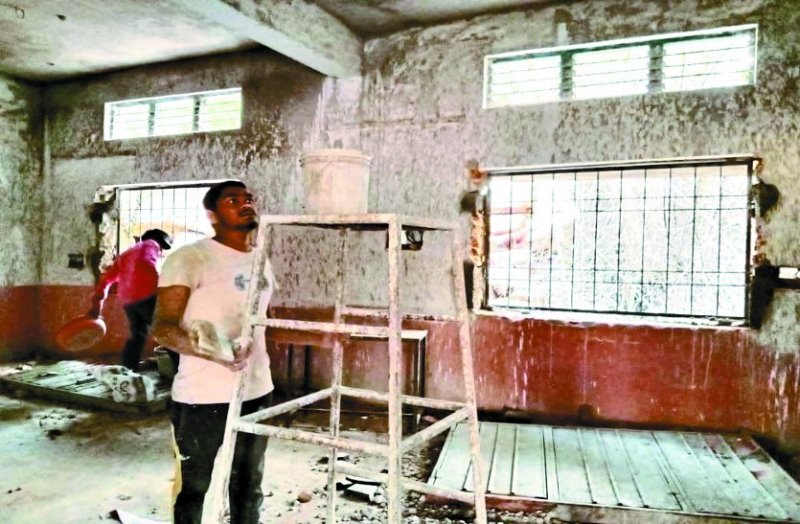 78 साल पुराना आदर्श बालक शाला भवन में किया जा रहा संधारण कार्य एवं रंगरोगन।
