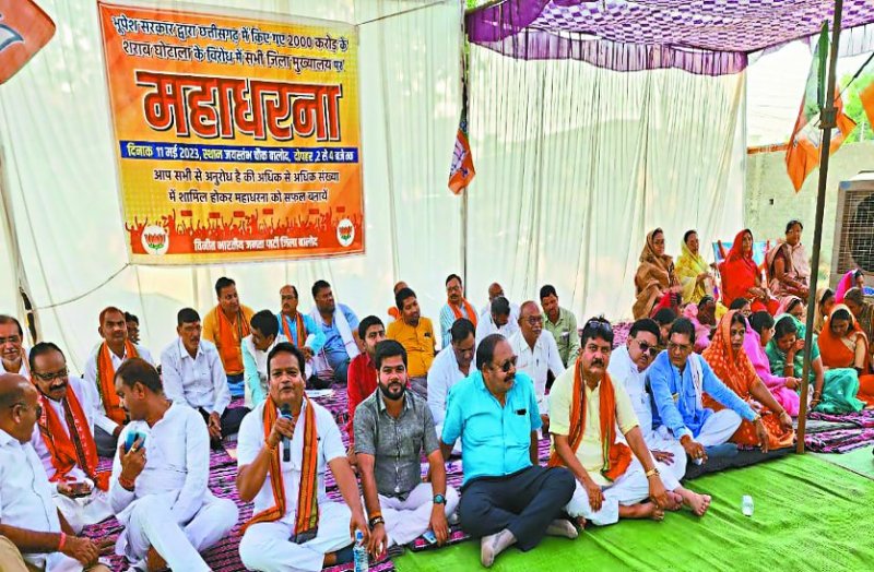 धरना प्रदर्शन में यज्ञदत्त शर्मा, पूर्व विधायक डॉ बालमुकुंद देवांगन, राजेंद्र राय, वीरेंद्र साहू प्रदेश सरकार पर बरसे। उन्होंने कहा कि प्रमाणित तौर पर शराब घोटाले में दो हजार करोड़ से आरंभ होकर आगे 10 हजार करोड़ का घोटाला की संभावना जताई है। अब कांग्रेस के कार्यकर्ता भी कोटे में ओरिजनल शराब मांगते हैं। अपनी ही सरकार के घोटाले वाली शराब में पानी ज्यादा हैं, कहते हैं। छत्तीसगढ़ के मुख्यमंत्री इसमें संलिप्त है। शासकीय दुकानों में उनकी जानकारी के बिना इतना बड़ा घोटाला नहीं हो सकता। कमीशन की राशि कहां-कहां गई है, यह जनता जानती है।