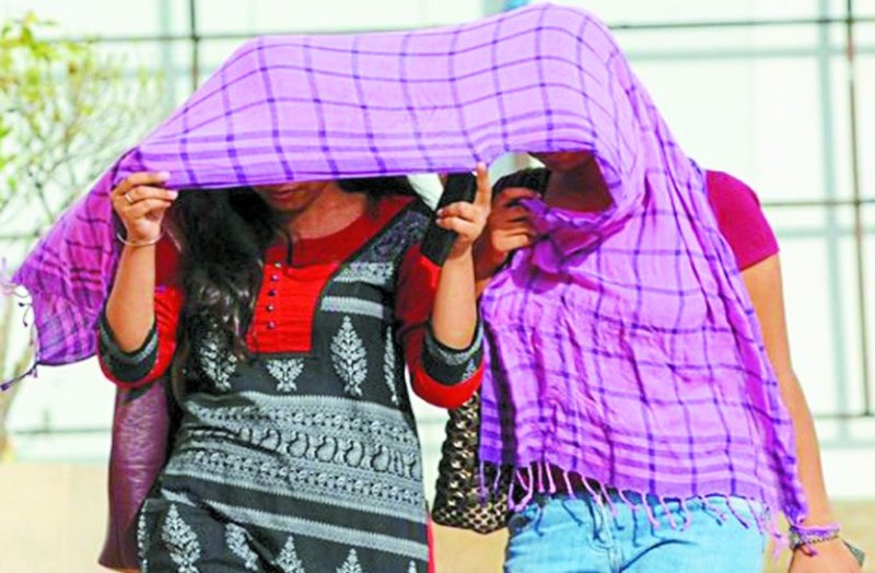 तेज धूप से बचती युवतियां