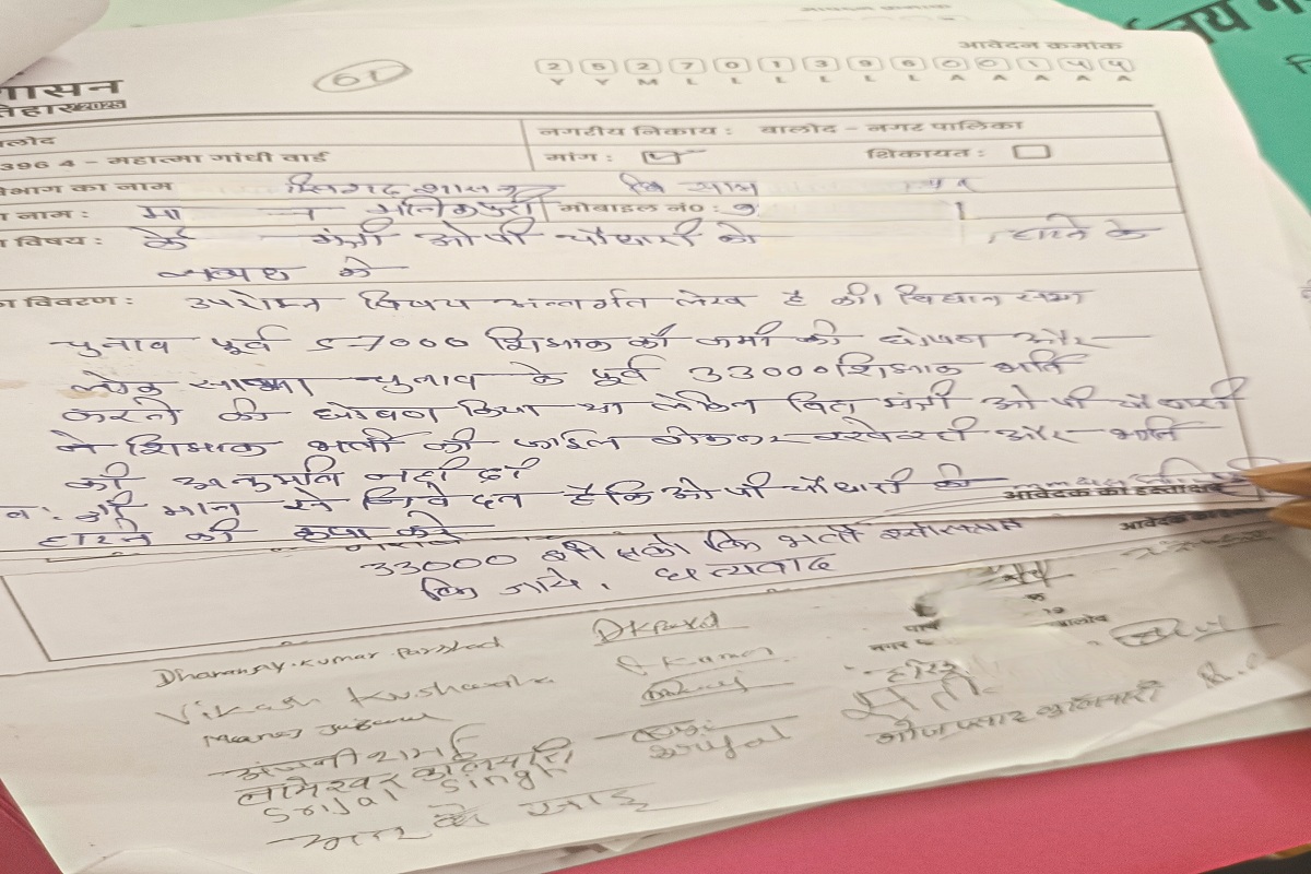 Sushasan Tihar 2025: सुशासन तिहार में बालोद नगर पालिका अंतर्गत 20 वार्डों में कुल 629 आवेदन आए हैं। एक आवेदन ऐसा भी आया है, जिसमें युवक ने वित्त मंत्री ओपी चौधरी को पद से हटाने की मांग की है।