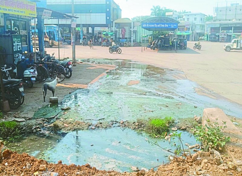 dirty water बालोद जिला मुख्यालय में इन दिनों नेशनल हाइवे सड़क निर्माण का कार्य चल रहा है। लेकिन यहां ठेकेदार व नेशनल हाइवे विभाग की सुस्ती साफ नजर आ रही है। नेशनल हाइवे नाली का निर्माण कर रहा है लेकिन नाली का निर्माण समय पर नहीं होने से पूरे बस स्टैंड परिसर में गंदा पानी भर गया है। गंदगी व बदबू के कारण इस परिसर के लोग अपनी दुकानें संचालित नहीं कर पा रहे हैं। नगरवासियों ने नेशनल हाइवे निर्माण के तहत सड़क व नाली निर्माण जल्द से जल्द करने कहा है। इसके बावजूद संबंधित विभाग के ठेकेदार व अधिकारियों को लोगों को हो रही परेशानी से कोई मतलब ही नहीं है।
