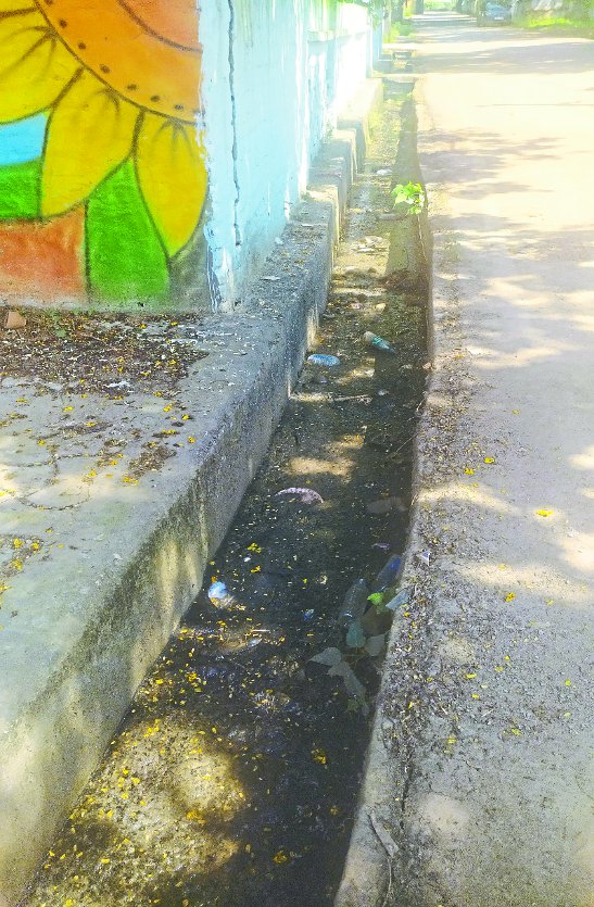 संजारी क्लब के पास चौपाटी बनाई गई है। दुकानदार कचरा व झूठे अपशिष्ट को नाली में ही फेंक रहे हैं। इसी नाली के किनारे विभागीय बंगले व कार्यालय भी है। काफी दिनों पानी जाम होने से बदबू उठ रही है।