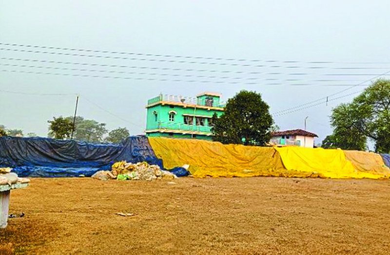 बारिश के आसार, हल्की बूंदा बांदी हुई, कैप कवर से ढंका गया धान