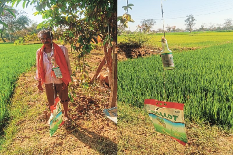 ग्राम हीरापुर में इस गर्मी सीजन लगभग 200 एकड़ में धान की खेती की गई है। धान की खेती करने वाले लगभग हर किसान यह प्रयोग कर रहे हैं। गांव में जाकर देखें तो हर खेत में कांच की बोतल में लोहे की वस्तु बंधी दिखाई देगी। उनकी आवाज खेतों से लेकर सड़क तक भी सुनाई देती है। जिले में कई किसानों की फसलें सूखने की स्थिति में है। उसका प्रमुख कारण भूजल स्तर गिरना है, जिससे बोर सूख रहे हैं। ऐसे में किसानों ने फसलों को बचाने भी जद्दोजहद कर रहे हैं।
