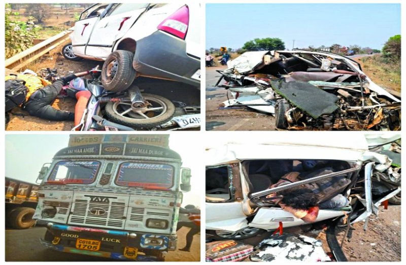 बालोद/डौंडी/दल्लीराजहरा. आयरन ओर से भरे ट्रक ने सामने से आ रही कार और एक बाइक को टक्कर मार दी, जिससे पांच लोगों की मौत हो गई। एक गंभीर रूप से घायल हो गया। मरने वालों में एक 13 साल की बच्ची भी शामिल है। ड्राइवर ट्रक छोड़कर फरार हो गया। पुलिस ने मर्ग कायम कर लिया है। दुर्घटना डौंडी थाना क्षेत्र के ग्राम मरकाटोला पुल के पास हुई। ट्रक सीजी 19 बीजी 1705 कच्चे की ओर से आयरन भरकर रायपुर की ओर जा रहा था। मरकाटोला के पास पहुंचा, तभी सामने से कार और उसके पीछे बाइक भी आ रही थी। ट्रक चालक तेज रफ्तार होने के कारण अपनी गति को नियंत्रित नहीं कर सका। दोनों गाडिय़ों को एक-एक कर टक्कर मार दी।