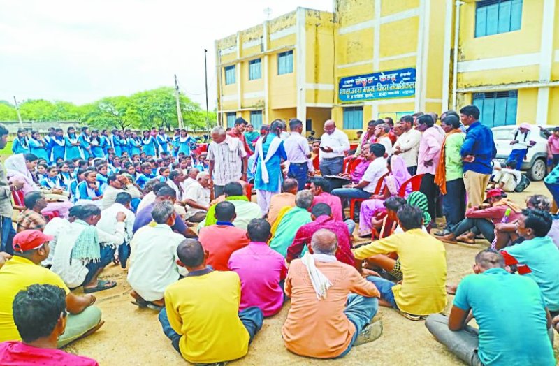 स्कूल में तालाबंदी के बाद जिला शिक्षा अधिकारी से चर्चा करते विद्यार्थी और पालक।