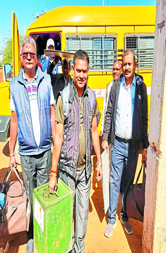 मतदान केंद्र रवाना होते निर्वाचन टीम