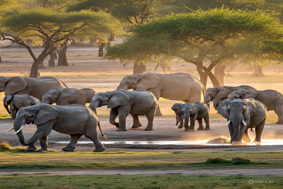 जंगल के घूम रहे 28 हाथियों का दल (Photo AI)