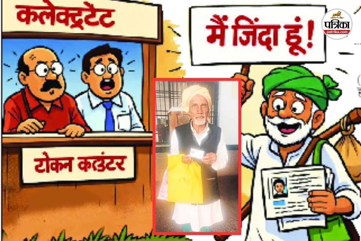 मैं जिंदा हूं साहब, टोकन तो कटवा दो (फोटो सोर्स- पत्रिका)