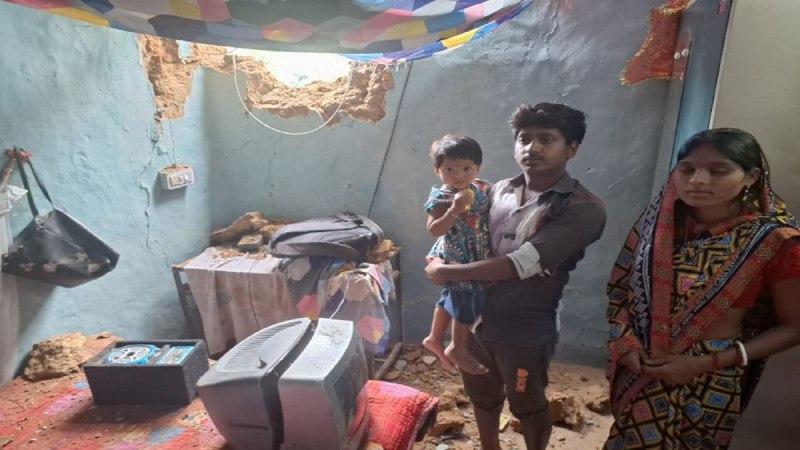 रामानुजगंज. CG elephant attack: बलरामपुर जिले के रामानुजगंज से लगे ग्राम कमलपुर में मंगलवार की सुबह 5 बजे पति-पत्नी अपनी ढाई साल की बच्ची के साथ घर में सो रहे थे। इसी दौरान एक हाथी वहां पहुंचा और घर की दीवार ढहा दी। इस दौरान पति-पत्नी व उनकी बेटी बाल-बाल बच गए। हाथी द्वारा घर की दीवार तोडऩे (CG elephant attack) के बाद फसल को भी नुकसान पहुंचाया गया, तत्काल स्थानीय लोगों द्वारा वन विभाग को सूचना दी गई। लेकिन वन अमले के पहुंचने से पहले लोगों ने शोर मचाकर हाथी को खदेड़ दिया।