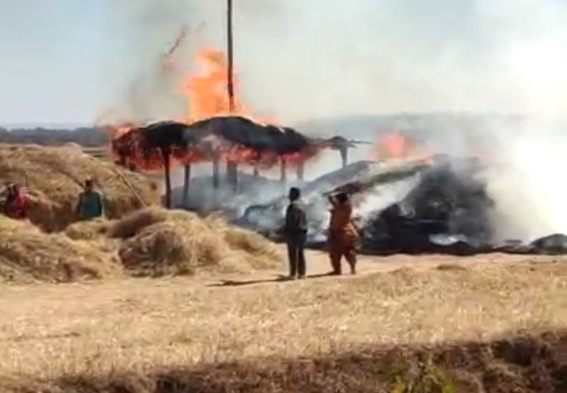 इसी दौरान अचानक खलिहान में मिसाई के बाद रखे पुआल के बड़े ढेर में आग लग गई और देखते ही देखते एक मचान में रखे पुआल में भी आग फैल गई। इससे पुआल धु-धु कर जलने लगी। यह देख वहां अफरा-तफरी मच गई।