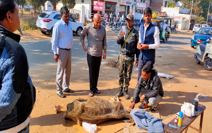 इसी दौरान वार्ड क्रमांक 1 में स्थित पेट्रोल पंप के समीप सडक़ किनारे अचेत अवस्था में गाय को देखा, इसके बाद उन्होंने तत्काल पशु चिकित्सा अधिकारी डॉ. विकास जायसवाल को सूचित कराकर मौके पर बुलाया।