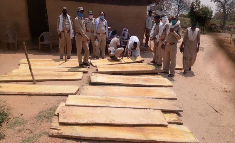 वाड्रफनगर. लॉकडाउन में भी सरगुजा संभाग के जंगल से तस्करों (Wood smugglers) द्वारा पेड़ों की कटाई की जा रही है। इस काम में तस्करों का साथ ग्रामीण बखूबी दे रहे हैं। कई मौकों पर वे वन विभाग या पुलिस के हत्थे चढ़ जाते हैं, लेकिन इन दिनों वन विभाग द्वारा गांवों में छापामार कार्रवाई की जा रही है।