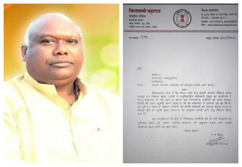 राजपुर. बलरामपुर-रामानुजगंज जिले के तहसील शंकरगढ़ को नया अनुविभाग बनाया गया है। संसदीय सचिव व सामरी विधायक चिंतामणि महाराज (Parliamentary Secretary) के प्रयास से यह संभव हो पाया है। शंकरगढ़ में एसडीएम कोर्ट स्थापित करने संसदीय सचिव ने 8 दिन पूर्व ही बलरामपुर कलक्टर (Balrampur Collector) को पत्र लिखा था।