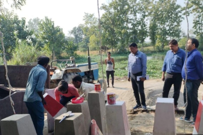 सीमा स्तंभों का स्वयं सहायता समूह ने किया निर्माण